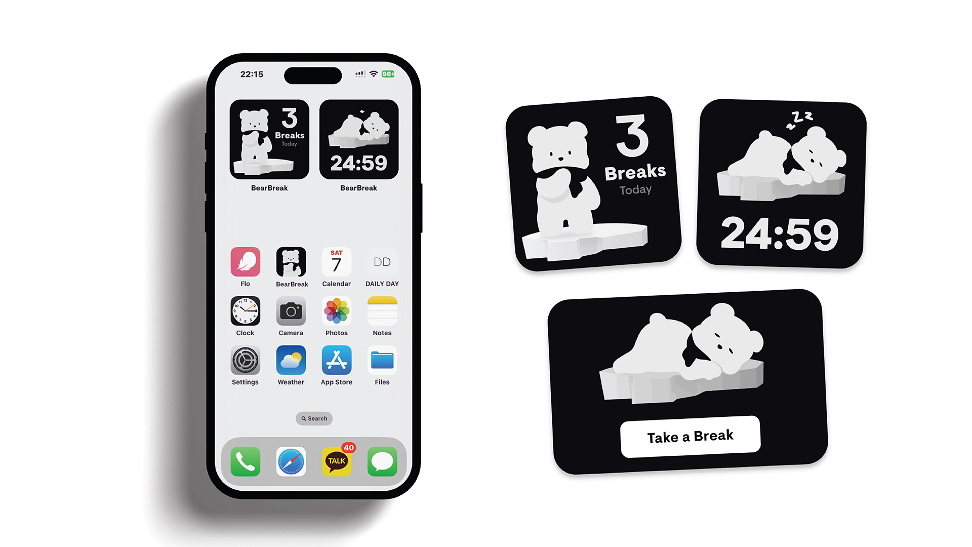 열심히 일하고 생산성을 높이 평가하는 세상에서, 휴식이 간과되거나 죄책감을 유발하기도 한다. 많은 사람들이 제대로 쉬지 않고 일을 밀어붙이다가 결국 번아웃과 극심한 피로에 시달린다. 대부분의 생산성 도구는 더 많은 일을 해내는 데 초점을 맞추지만, 진정한 휴식의 중요성을 강조하는 경우는 드물다. 이러한 문제의식에서 나온 것이 바로 BearBreak이다. 일이나 집증에 위해사 말고 휴식을 위해서 만든 포모도로 스타일 앱이다. 곰이 동면을 통해 깊이 쉬는 것에서 영감을 받아, 이 앱은 휴식이 시간을 낭비하는 것이 아니라 우리의 건강과 장기적인 생산성을 위해 반드시 필요하다는 사실을 상기시켜 준다.